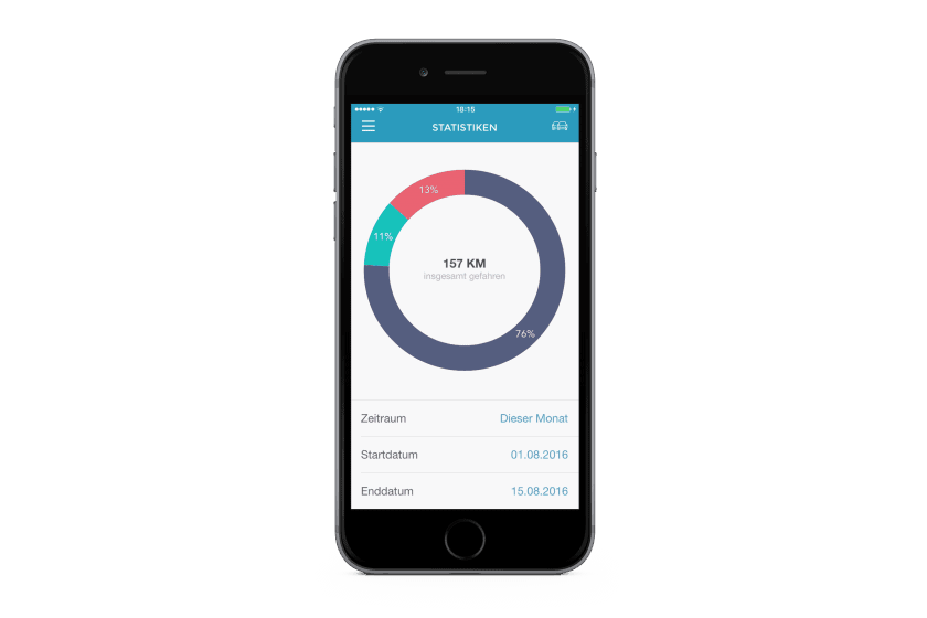 Hierbei wird nur der Start- und Endpunkt übertragen, da die Route für das Fahrtenbuch unwichtig ist. Somit gibt es keine Positionsüberwachung des Autos.